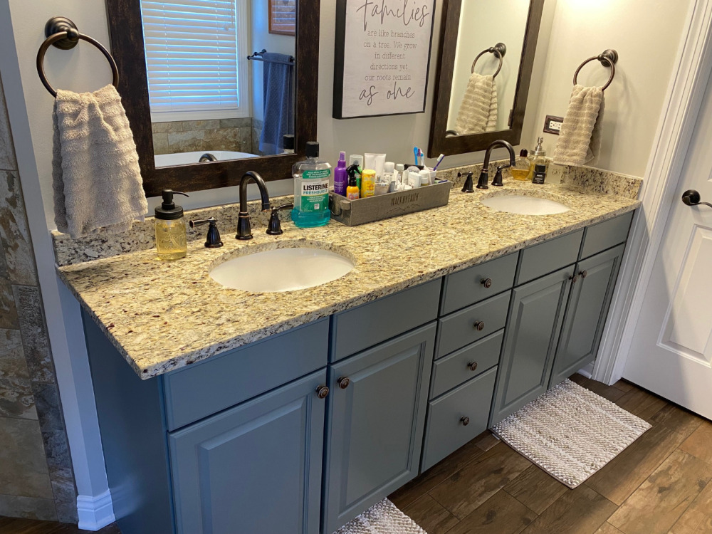 Refinishing your current cabinets or vanity can completely change your drab wood work. Refinishing is a cost effective way to update your living space.